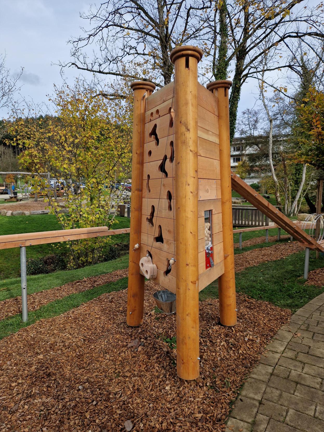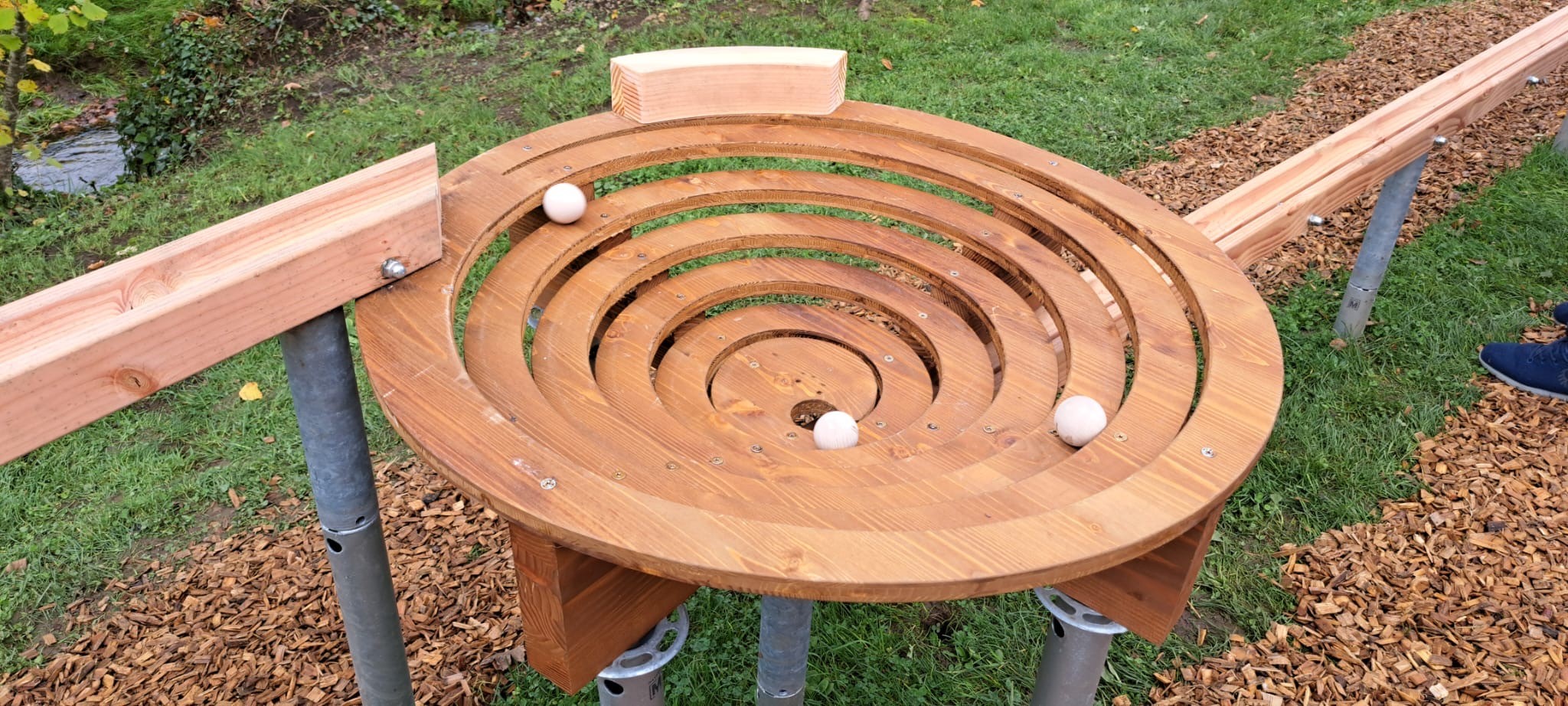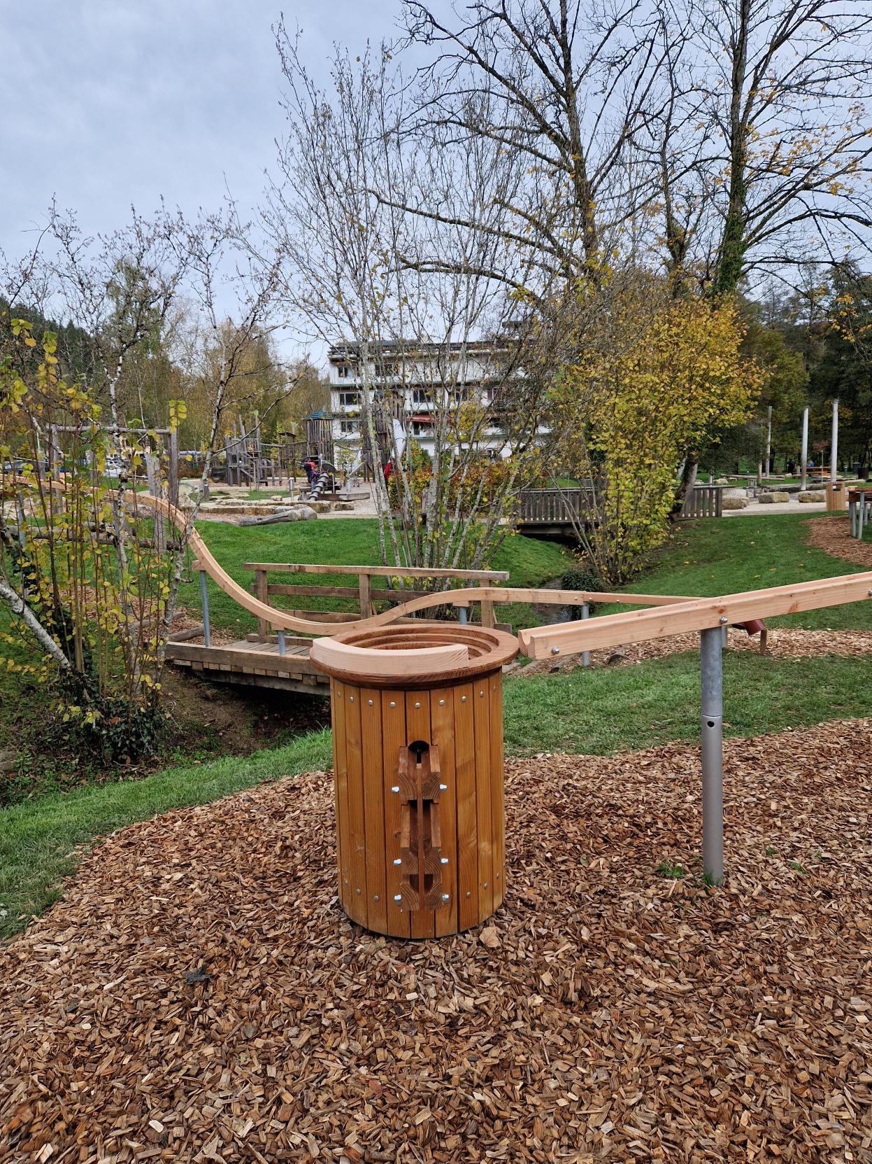 Tout au long du parcours, les boules en bois franchissent différents passages et obstacles, stimulant à la fois l’adresse et l’observation. Cette piste complète parfaitement les installations existantes et offre une activité de plein air naturelle et attrayante.